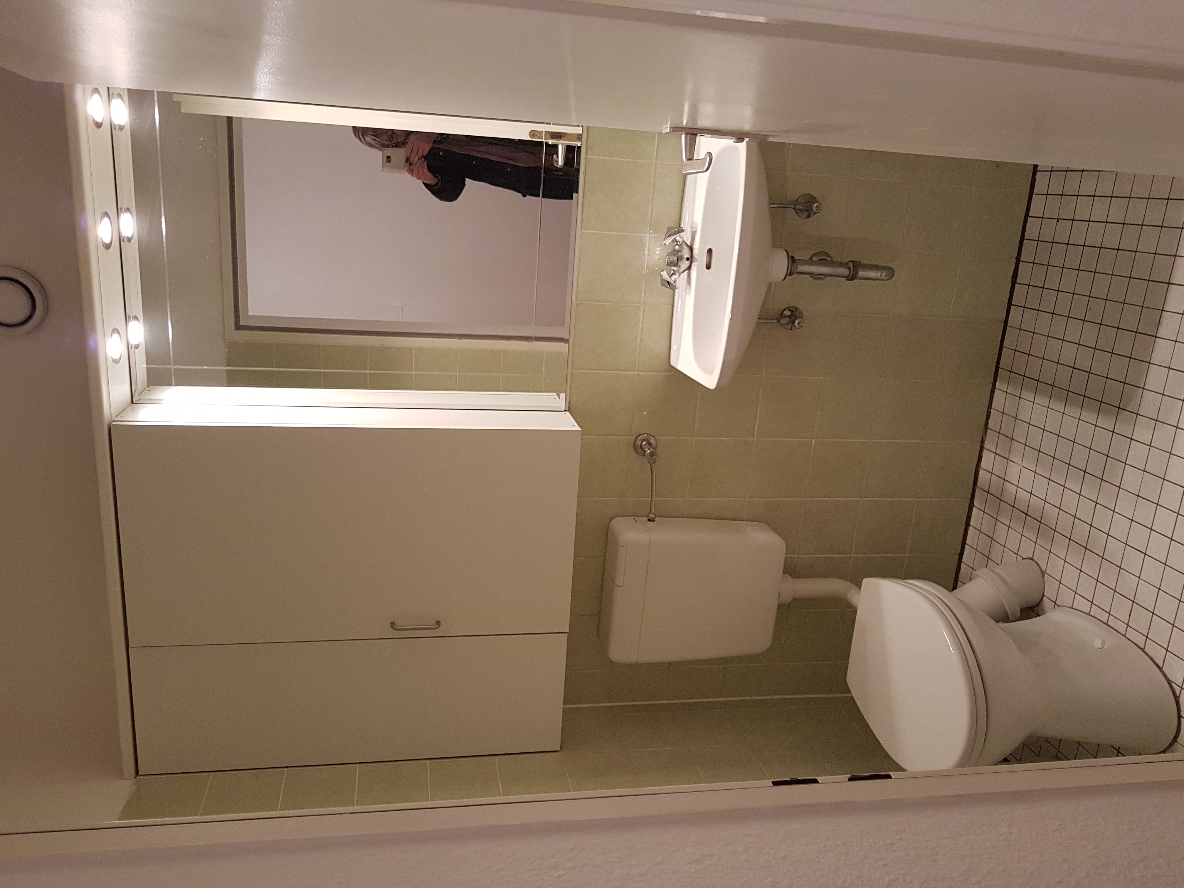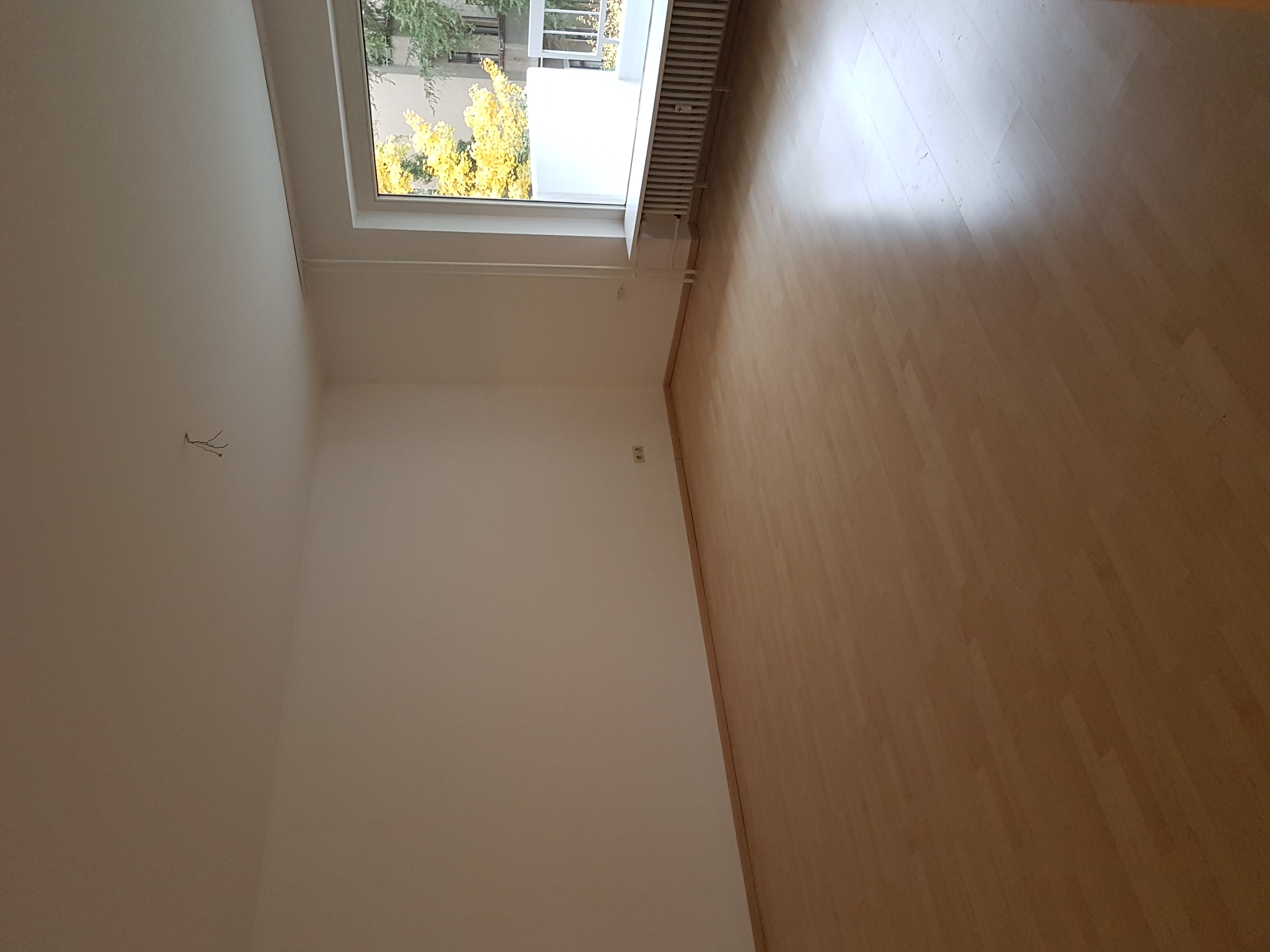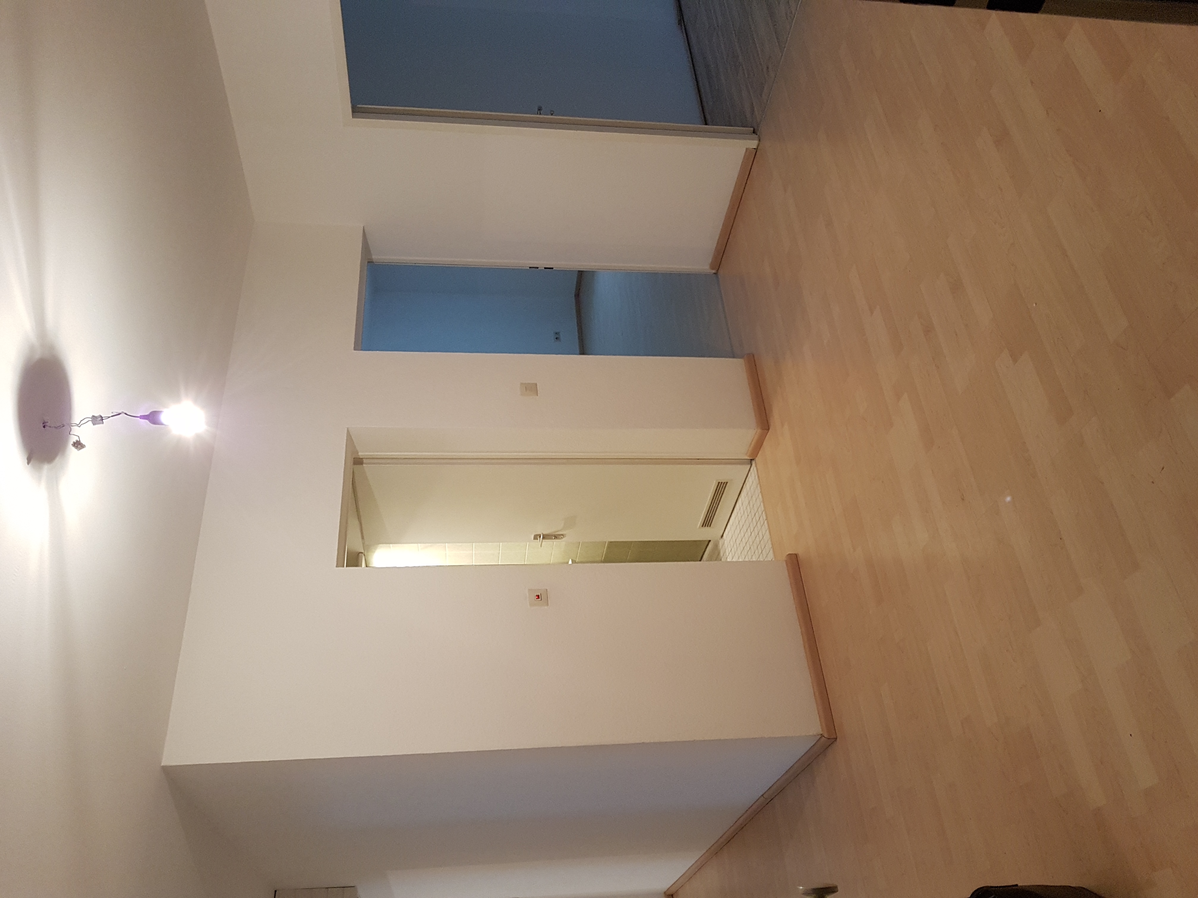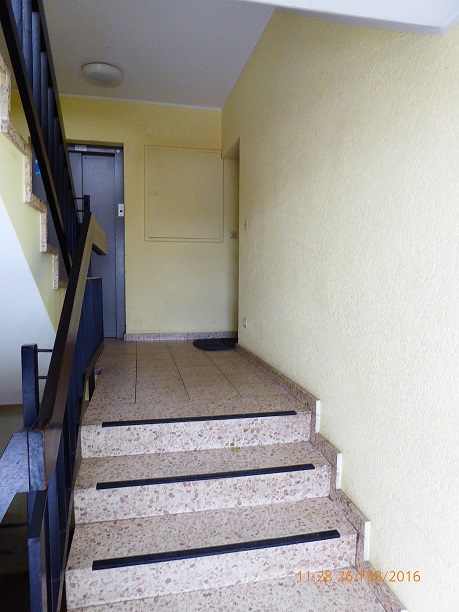 Die Wohnung ist sehr schön geschnitten und hat eine große Diele und ein separates Gäste-WC. Im Bad befindet sich eine Badewanne, WC-Becken und ein Handwaschbecken. Es ist auch Platz für eine Waschmaschine oder einen Schrank vorhanden. Die Wohnung verfügt über einen großen Balkon, welche sich über die gesamte Breite des Wohn-und Schlafzimmers ausbreitet und der zum Hof hinaus gelegen ist. Die Wohnung ist mit teils Laminat ausgestattet. Bad ist hellgrün gemuschelt und Gäste-WC ist weiß gefliest. Es ist eine Einbauküche vorhanden.